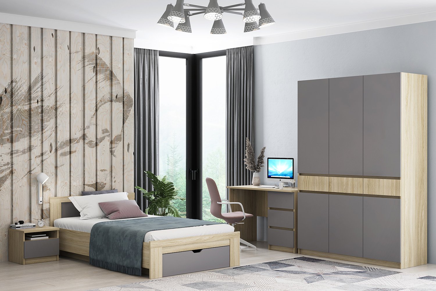 🛏️ Данный детский гарнитур Delta станет отличным решением для создания уютного и функционального пространства в детской комнате. Изготовленный из ЛДСП и МДФ, он сочетает в себе прочность и долговечность. Эти материалы легко чистятся и устойчивы к износу, что особенно важно для детской мебели, где активные игры и занятия не редкость.