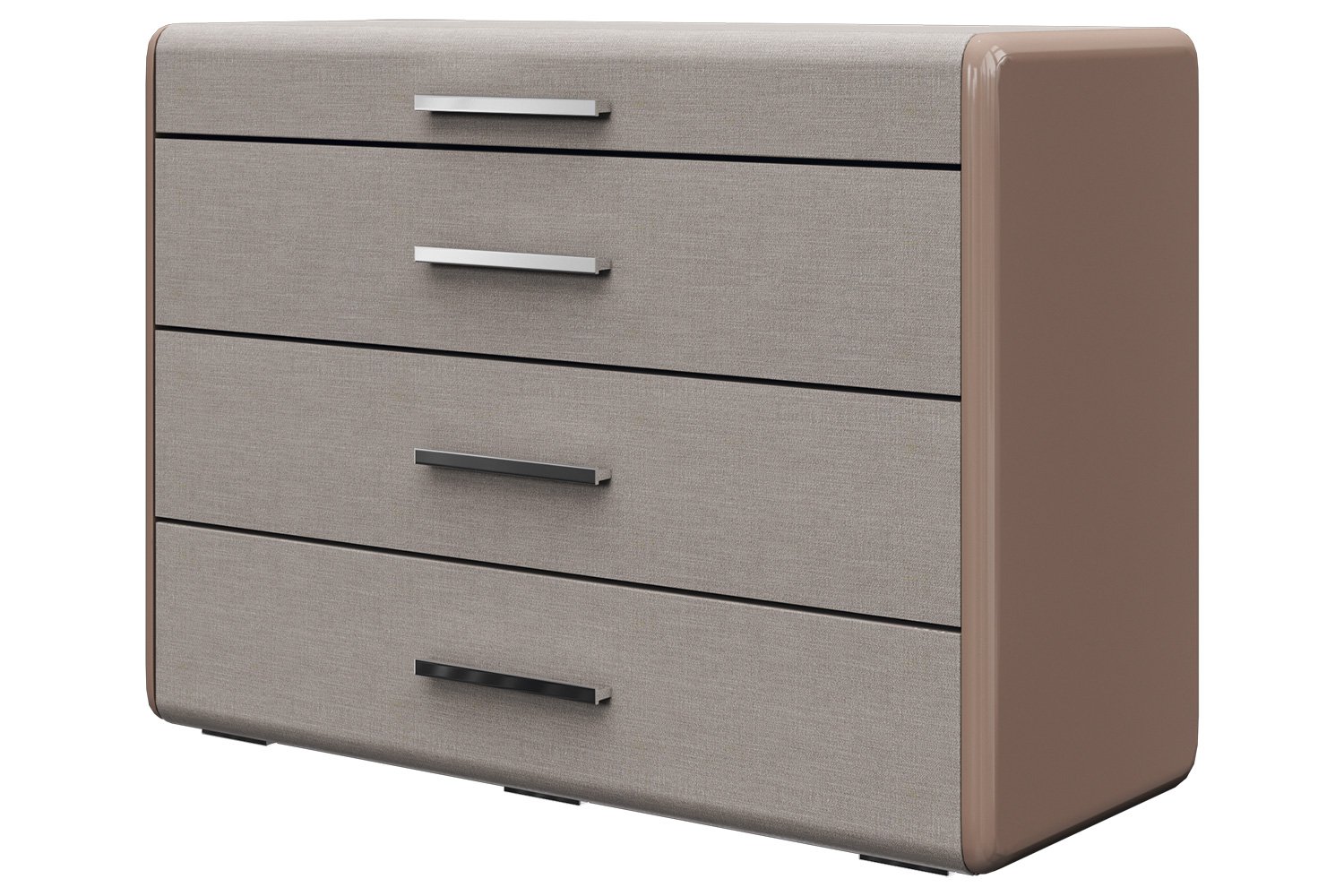 🛋️ Комод с четырьмя ящиками Viva — это стильный и функциональный элемент мебели для вашей гостиной. Его современный дизайн в цвете мокко глянец позволяет легко вписать его в любой интерьер, создавая гармоничное пространство. Комод изготовлен из качественных материалов, таких как ЛДСП и МДФ, что обеспечивает долговечность и надежность.