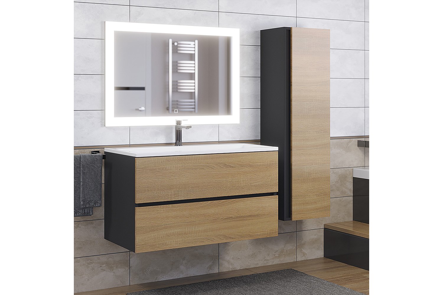 🌈 Цветовые решения позволяют легко интегрировать гарнитур в существующий интерьер. Белый вариант придаёт лёгкость и свежесть, чёрный добавляет нотку элегантности, а дуб сонома создаёт тёплую атмосферу. Выбор цветового решения зависит от предпочтений и общего стиля ванной комнаты, что делает гарнитур универсальным и адаптивным к различным дизайнерским решениям.