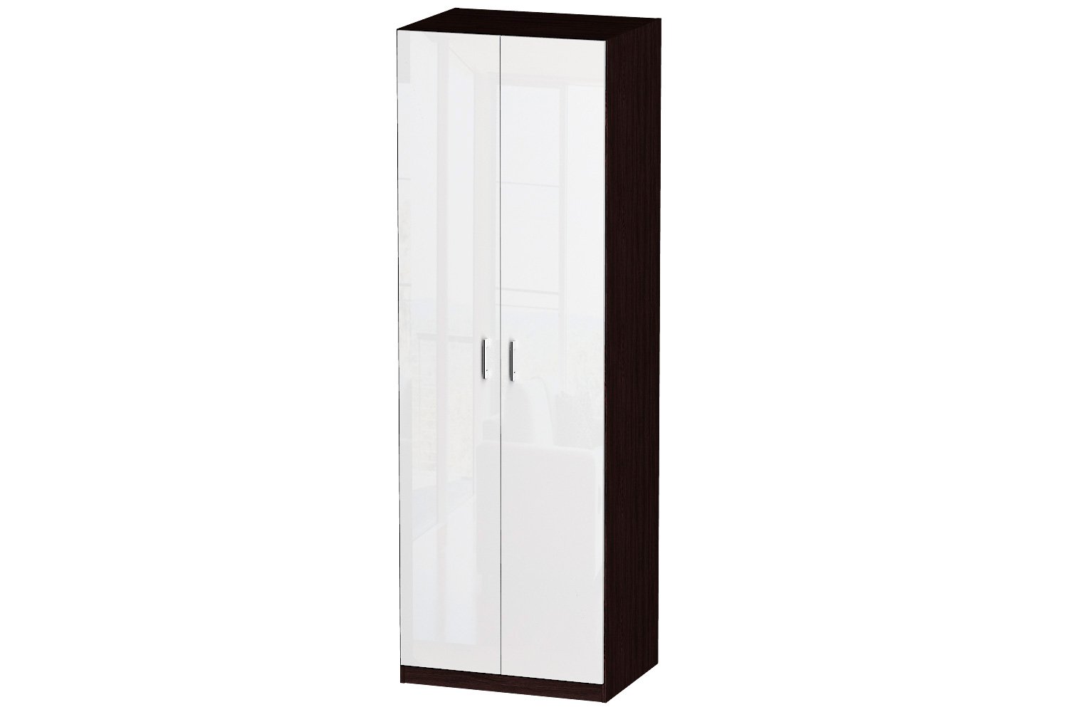 🧥 Внутреннее наполнение шкафа включает две полки и одну штангу для вешалок, что позволяет удобно организовать одежду и аксессуары. Отсутствие зеркальных дверей создаёт лаконичный дизайн, а глянцевое покрытие фасада из МДФ добавляет блеска и делает шкаф более привлекательным.