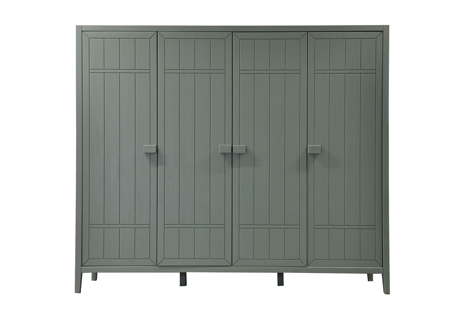 Конструкция шкафа выполнена из массива сосны, что обеспечивает прочность и долговечность. 🌳 Цвет каркаса в оттенке эвкалипта создает теплую атмосферу и гармонично сочетается с другими элементами мебели. Фасад шкафа также изготовлен из массива сосны, с матовым покрытием и фрезерованным дизайном, что добавляет изысканности и стиля.