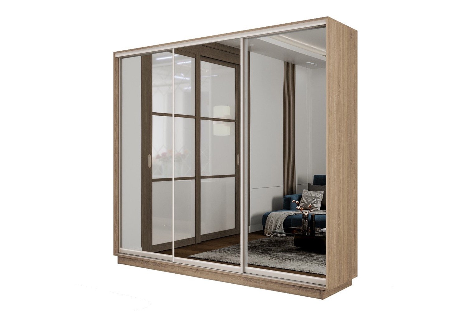 🛏️ Шкаф-купе 3-дверный Slide 2 представляет собой идеальное решение для организации пространства в спальне. Изготовленный из качественных материалов, таких как ЛДСП и МДФ, он сочетает в себе прочность и стильный внешний вид. Зеркальные двери не только добавляют элегантности, но и визуально увеличивают пространство, что особенно важно для небольших комнат.