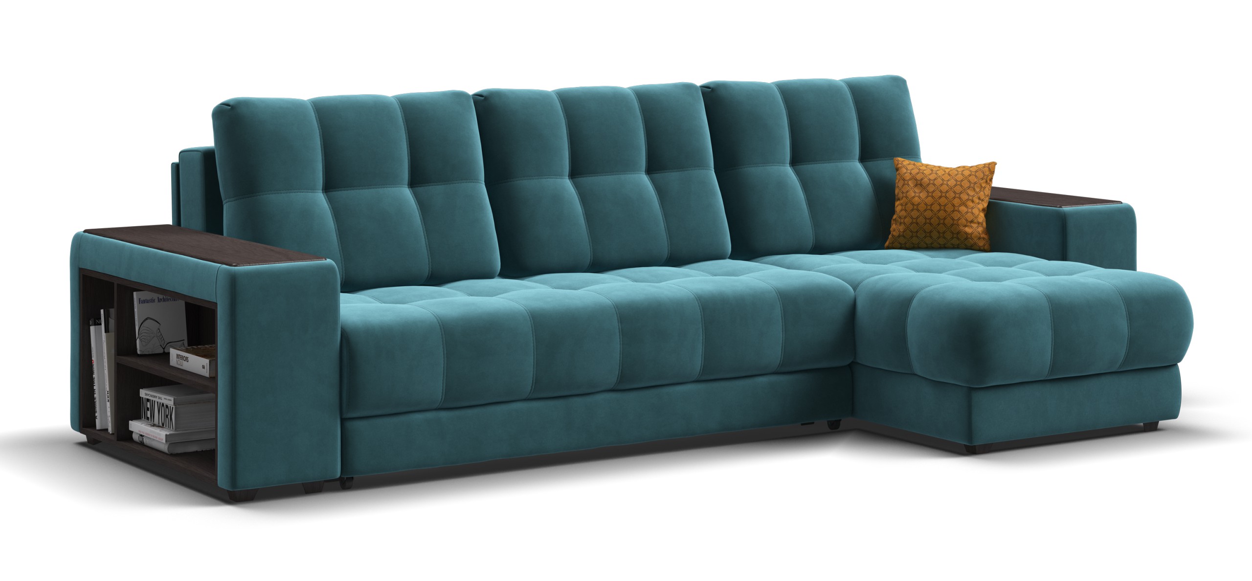 Диван обит качественным велюром зеленого цвета, который придаёт ему элегантный и современный вид. Велюр приятен на ощупь, устойчив к износу и легко чистится, что делает его практичным выбором для повседневного использования. Наполнение дивана — это высококачественные материалы, обеспечивающие комфорт и поддержку при сидении и лежании.