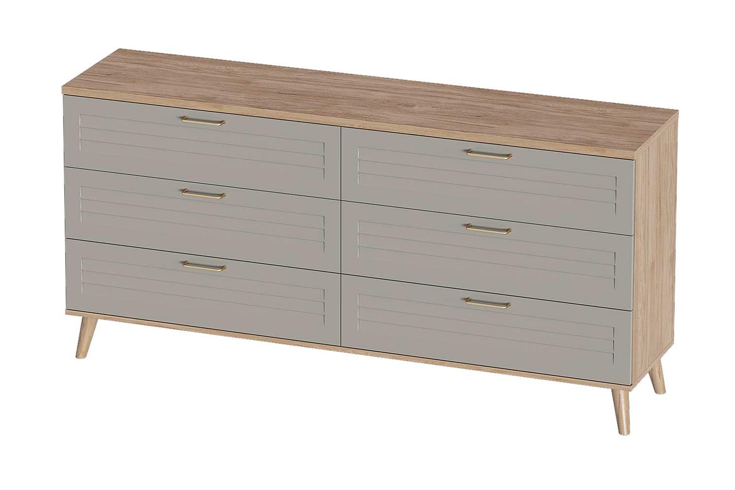🪑 Комод с шестью ящиками - это стильное и функциональное решение для вашей гостиной. Он выполнен в цвете дуб натуральный светлый, что придаёт помещению лёгкость и уют. Элегантный дизайн с фрезерованным фасадом добавляет изысканности, а матовая поверхность делает его приятным на ощупь и легко чистится.
