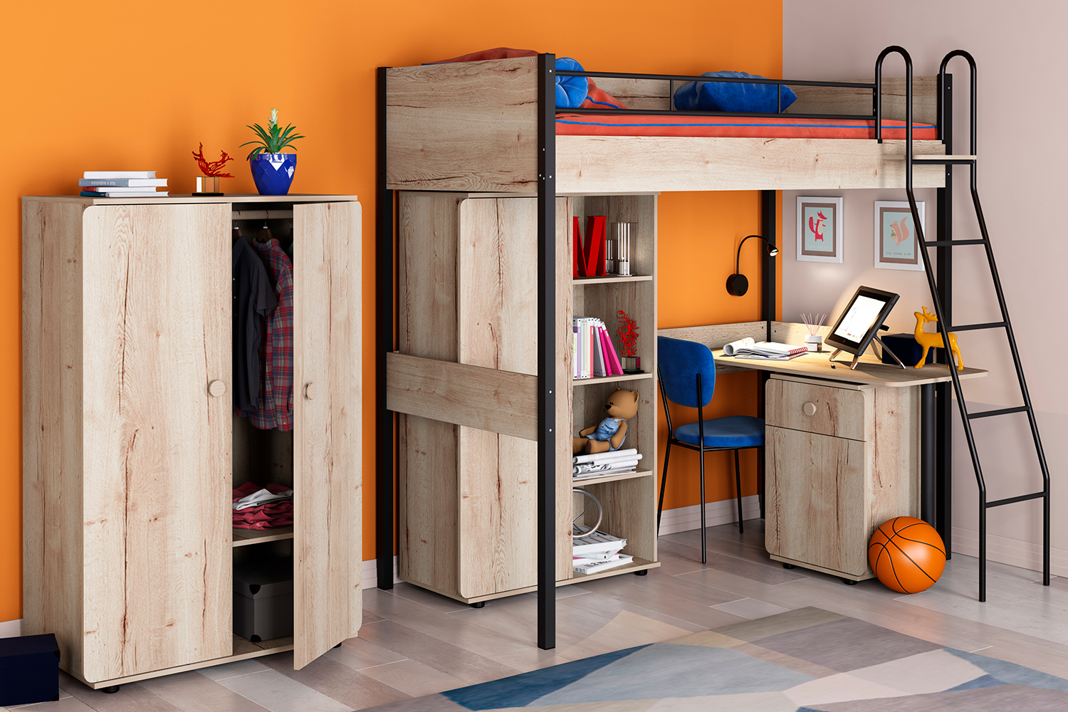 Детский гарнитур Loft представляет собой идеальное решение для обустройства комнаты вашего ребенка. 🌟 Изготовленный из качественных материалов, таких как ЛДСП и МДФ, он обеспечивает долговечность и надежность. Гарнитур также включает зеркало, что добавляет функциональности и стиля в интерьер. Его продуманная конструкция делает использование мебели удобным и комфортным для детей разных возрастов.