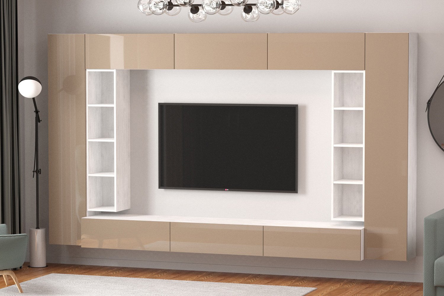 Набор мебели Studio 2 представляет собой стильное и функциональное решение для гостиной, которое сочетает в себе современный дизайн и практичность. Цвет каркаса выполнен в оттенке северного дерева, что привносит в интерьер атмосферу уюта и тепла. Мебель изготовлена из качественных материалов, таких как МДФ для фасадов и ЛДСП для каркаса, что обеспечивает долговечность и устойчивость к износу. 🌲