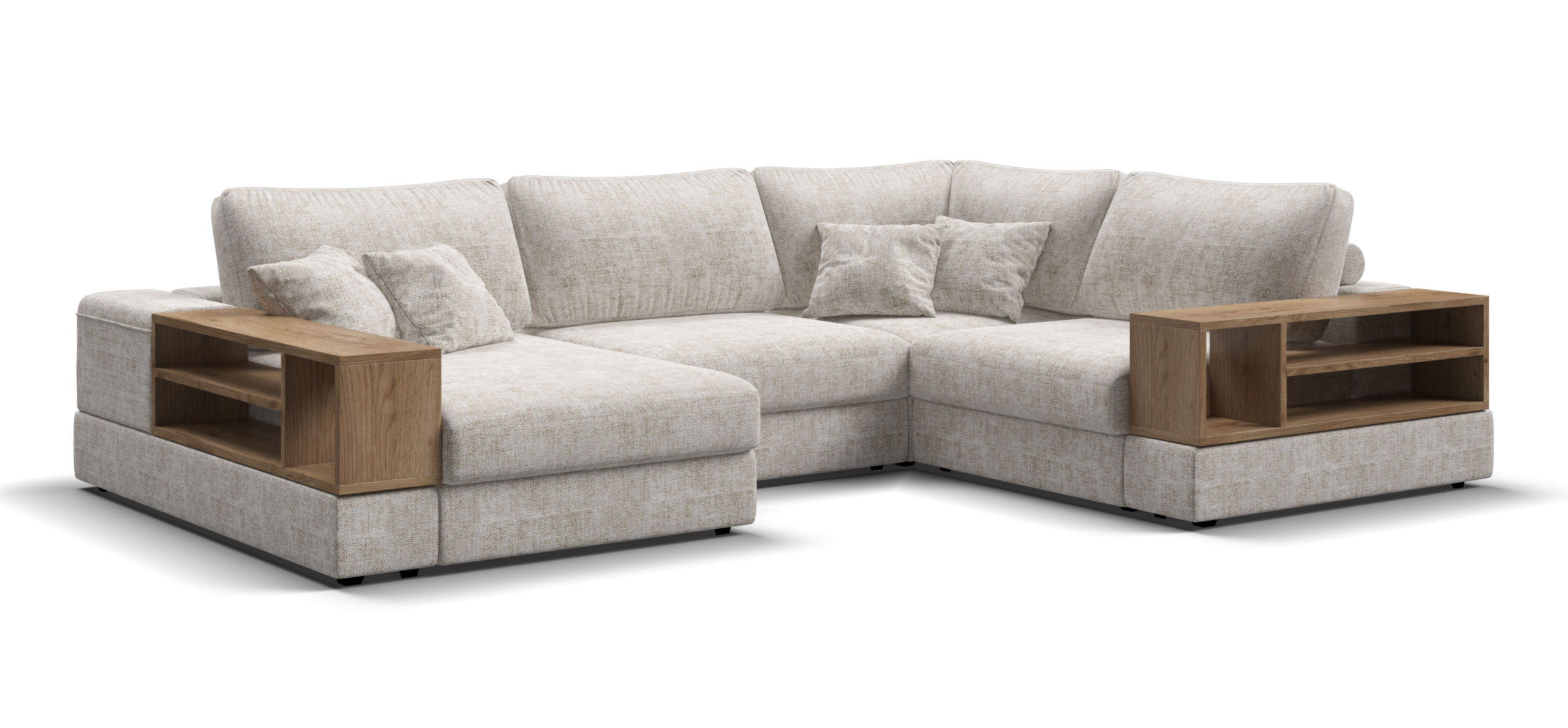 Диван имеет левостороннюю компоновку, что позволяет легко вписать его в любые планировки. Модульная система дает возможность изменять конфигурацию в зависимости от ваших потребностей и предпочтений, что делает его универсальным решением для гостиных, офисов и других помещений.