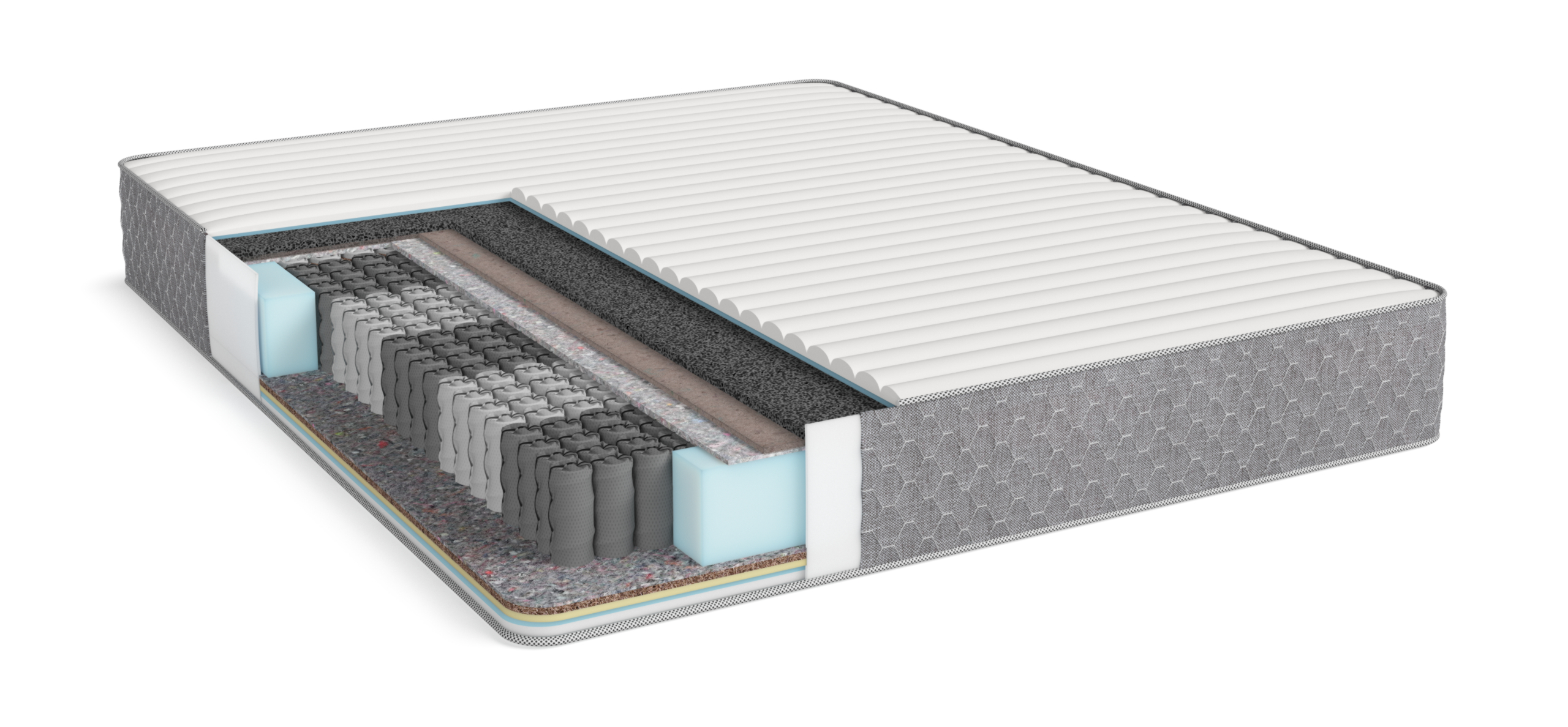 Матрас состоит из многослойной структуры, в основе которой находится независимый пружинный блок, обеспечивающий оптимальную поддержку тела. Этот блок позволяет каждому пружине работать независимо, что способствует равномерному распределению нагрузки и снижению давления на суставы.