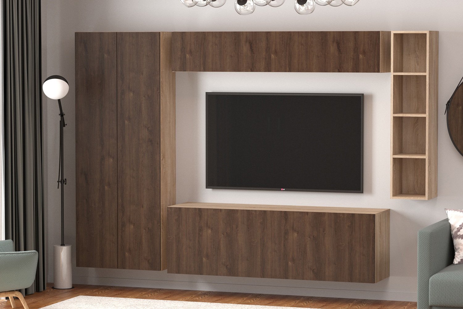 🛋️ Набор мебели Studio 4 — это идеальное решение для создания стильного и функционального интерьера в вашей гостиной. Цвет каркаса в оттенке дуба сонома придаёт пространству уют и тепло, а матовая поверхность фасадов из ЛДСП добавляет современный штрих. Этот набор сочетает в себе эстетичность и практичность, позволяя легко вписаться в любой интерьер.