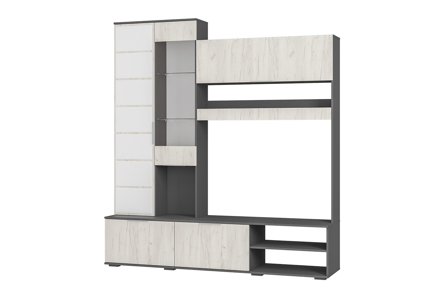 🛋️ Гостиная Plaza – это современное решение для оформления вашего интерьера. Этот стильный комплект мебели выполнен в графитовом цвете, который легко вписывается в любой современный дизайн. Материалы, использованные в производстве, включают ЛДСП и стекло, что обеспечивает не только привлекательный внешний вид, но и долговечность. Матовая поверхность фасадов придаёт мебели элегантность и делает её менее подверженной царапинам.