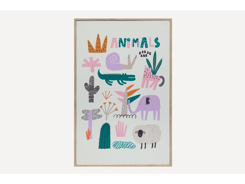 🖼️ Постер детский Энималс-2 — это яркое и стильное дополнение к интерьеру детской комнаты. Скандинавский стиль оформления делает его универсальным, позволяя легко вписать его в различные дизайны. Основной цвет постера — фиолетовый, который добавляет нотку игривости и уюта, а натуральная деревянная рама подчеркивает натуральность и гармонию с окружающей средой.