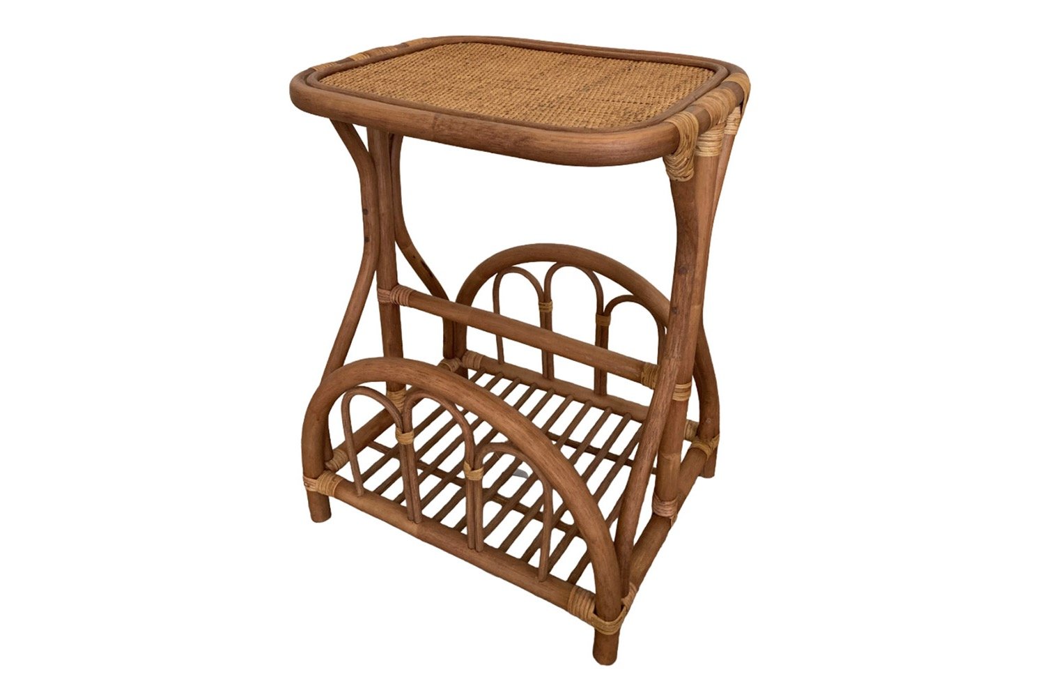 Столик газетница 13-14 – это стильный и функциональный элемент мебели, который отлично впишется в любой интерьер. 🌿 Его цвет столешницы в оттенке миндаль матовый придаёт изделию элегантный вид, а натуральный ротанг, из которого выполнены как столешница, так и основание, добавляет нотки уюта и природности.