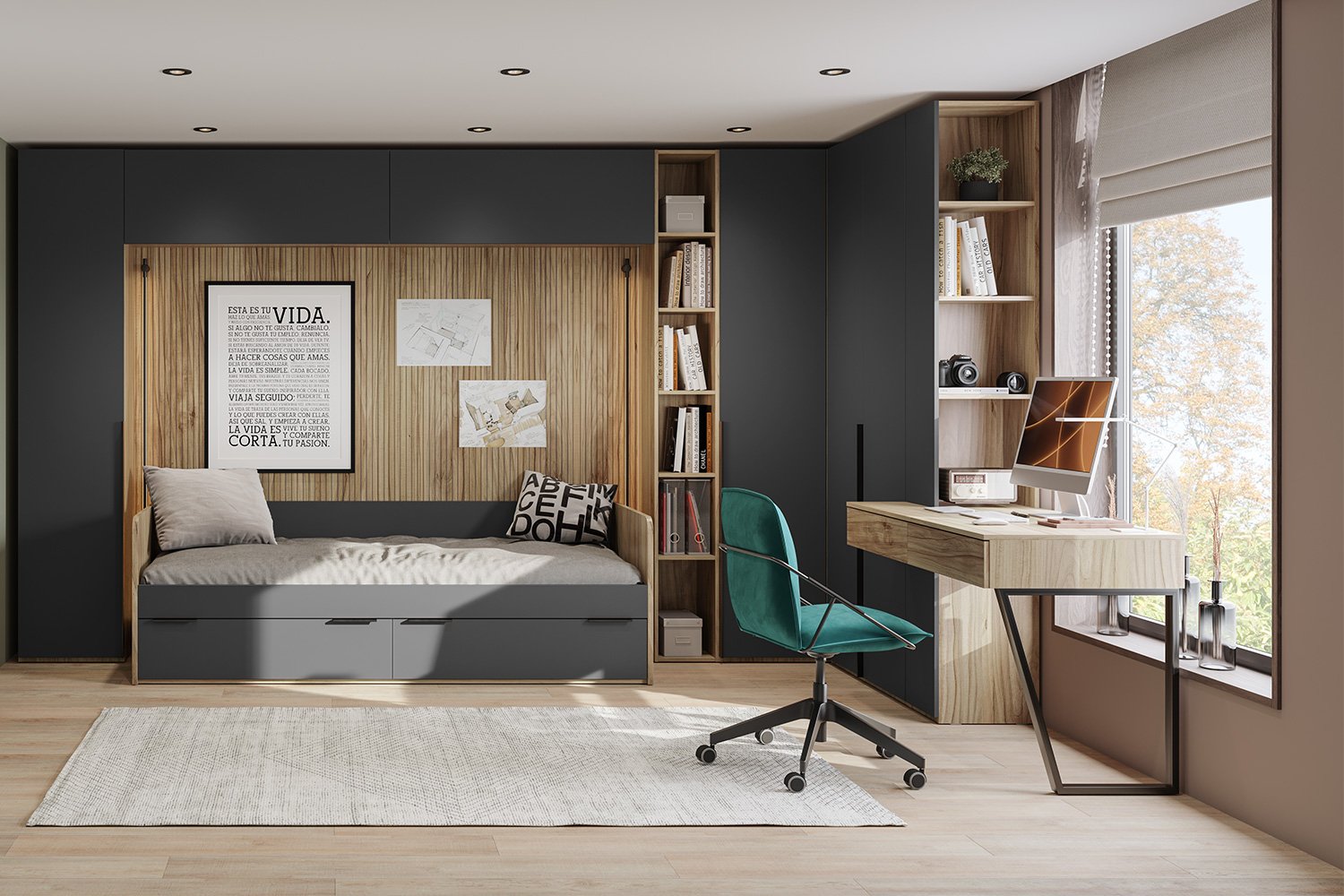 📦 Комплект включает в себя необходимые элементы для организации хранения и удобства. Шкафы и полки позволят поддерживать порядок, а стол и кровать обеспечат комфортное место для учёбы и отдыха. Каждый элемент гарнитура продуман до мелочей, что делает его не только красивым, но и очень практичным.