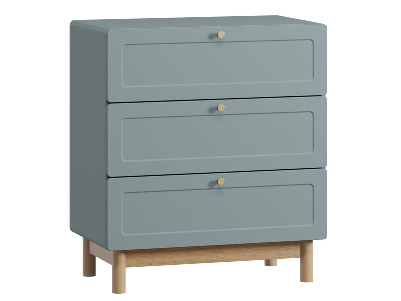 🌿 Основной цвет комода — зеленый, что придает ему оригинальность и делает его центром внимания в помещении. Металлические ручки в отделке Этель Золото добавляют изысканности, а декоративные опоры из сращенного массива дерева подчеркивают натуральный характер изделия. Фетровые подпятники защищают пол от повреждений, что делает использование комода более удобным.