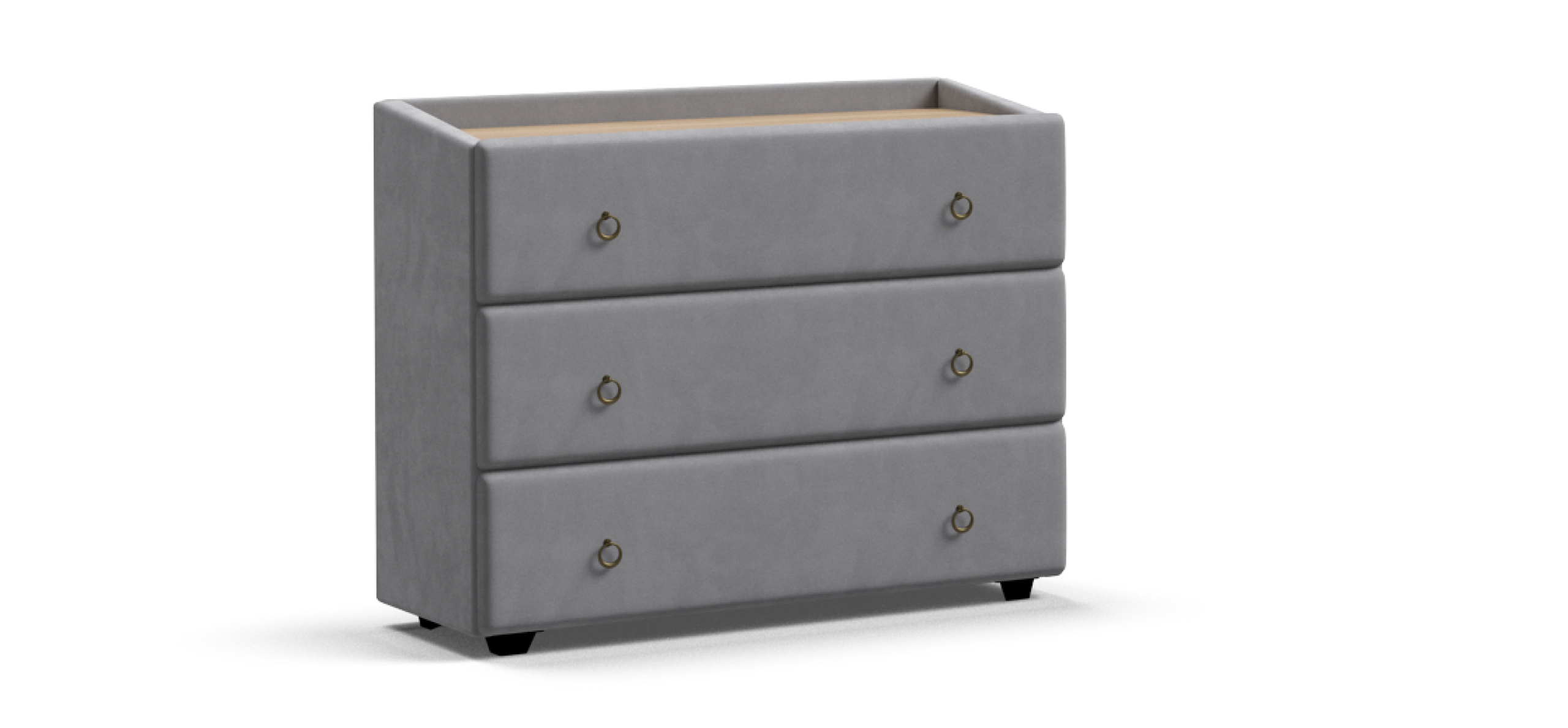 Комод оснащен несколькими вместительными ящиками, которые обеспечивают удобное хранение вещей. Высококачественная фурнитура и надежные механизмы гарантируют долговечность и легкость в использовании. Мягкая обивка из велюра придает мебели уютный вид и делает ее приятной на ощупь.