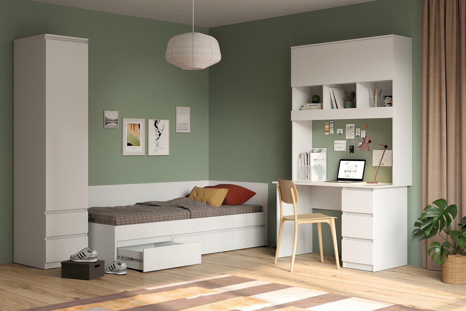 🛏️ Гарнитур включает в себя всё необходимое для организации удобного и функционального пространства. Он помогает поддерживать порядок в комнате, обеспечивая достаточно места для хранения игрушек, книг и других принадлежностей. Таким образом, детская комната становится не только красивой, но и практичной.