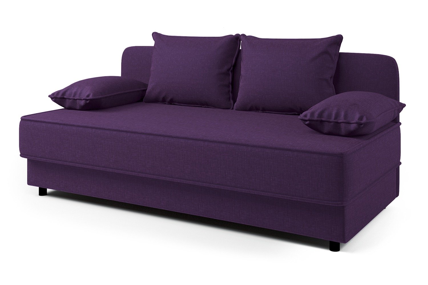 Эстетика и функциональность гармонично сочетаются в этом предмете мебели. 🎨 Цвет фиолетовой обивки и подушек добавляет яркости в интерьер, а черные пластиковые ножки придают современный вид. Кушетка Prima станет стильным акцентом в вашем доме, идеально подходя для разных стилей оформления.