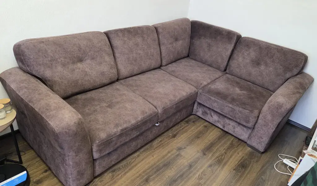 Продаю угловой диван-кровать в хорошем состоянии. Размер 260×96×190 см, спальное место 150×219 см, угол правый. Механизм трансформации: дельфин. Материал обивки: велюр, цвет: тёмно-коричневый. Был в эксплуатации 7 лет, есть два следа от утюга на белом матрасе. В остальном, обивка в отличном состоянии. Возможен торг.