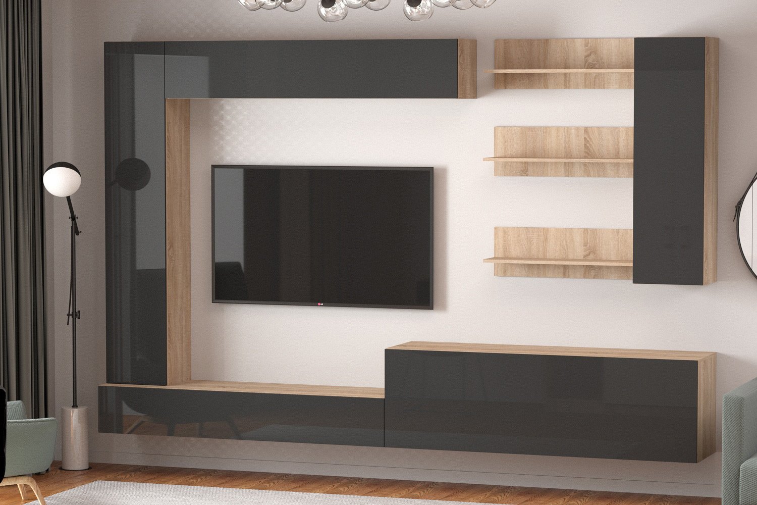 Набор мебели Studio 6 представляет собой стильное и функциональное решение для гостиной. Цвет каркаса в оттенке дуба Сонома придаёт пространству уют и тепло. Мебель выполнена из качественных материалов: каркас изготовлен из ЛДСП, а фасады - из МДФ с глянцевым покрытием, что обеспечивает долговечность и лёгкость в уходе. 🌳