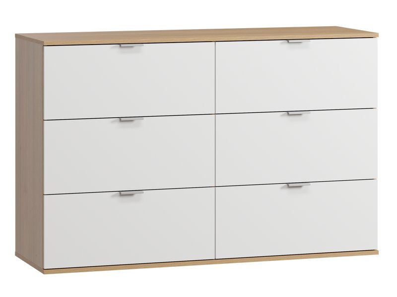 Комод включает шесть просторных ящиков, которые обеспечивают достаточное место для хранения. Каждая из ящиков рассчитана на максимальную нагрузку в 5 кг, что позволяет удобно организовать вещи. Шариковые направляющие обеспечивают плавное открывание и закрывание, а наличие доводчиков делает процесс более комфортным и тихим. 🗄️