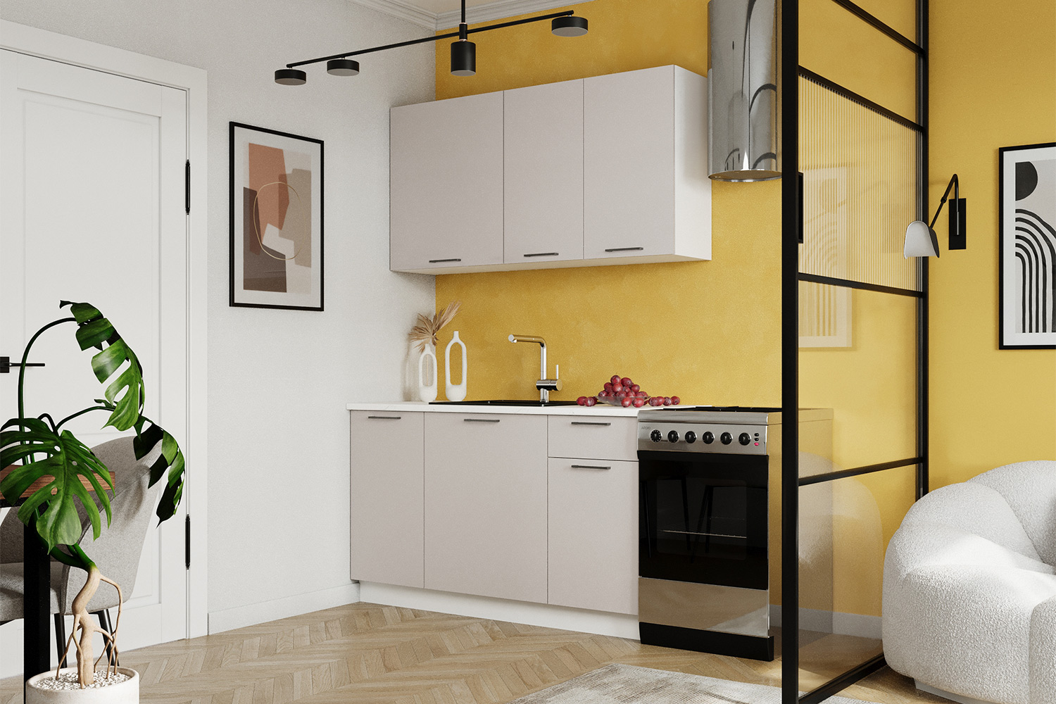 Кухонный гарнитур Trend – это стильное и функциональное решение для современной кухни. 🎨 Цвет каркаса в нежном белом исполнении создает ощущение легкости и пространства, а фасад цвета кашемир добавляет уют и элегантность. Такой контраст делает гарнитур универсальным, легко вписывающимся в любой интерьер.