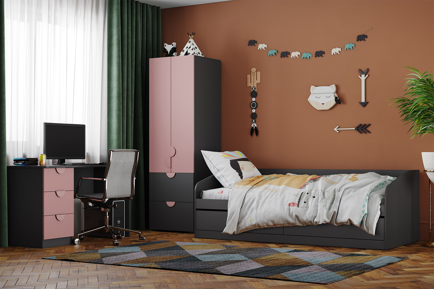 🎨 Цветовая гамма включает в себя стильный антрацит и нежно-розовый оттенки, что позволяет гармонично вписать мебель в любой интерьер. Комбинация этих цветов создает атмосферу уюта и тепла, а также способствует развитию творческого мышления у детей. Мебель станет не только практичным элементом, но и ярким акцентом в комнате.