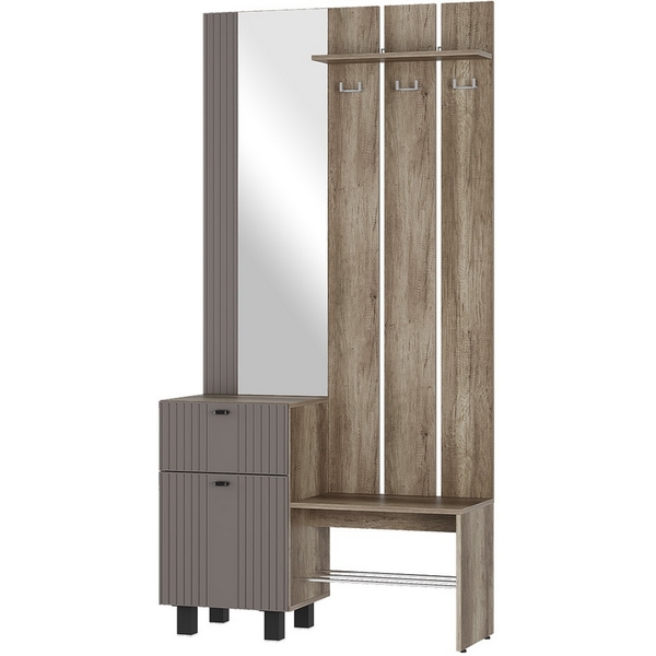 Крючки серого цвета из АБС-пластика и квадратные опоры черного цвета с регулируемыми подпятниками делают прихожую практичной и эргономичной. Толщина кромки в 0.45 мм и обработка зеркала еврокромкой обеспечивают аккуратный вид и защиту от повреждений. Этот элемент мебели станет отличным решением для организации пространства и добавления стиля в ваш интерьер. 🏡