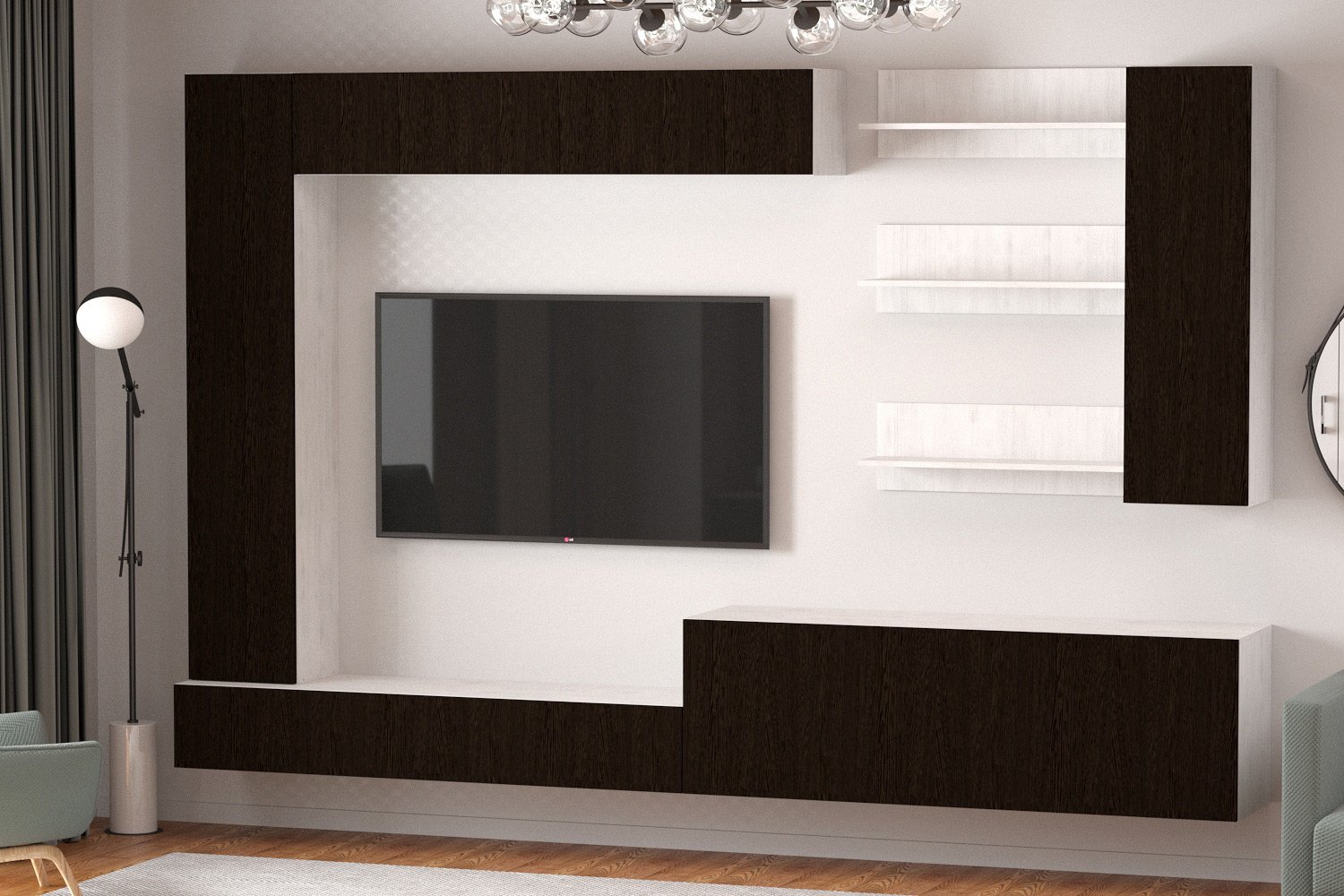 Установка мебели не требует сложных манипуляций, однако необходимо крепление к стене для обеспечения надёжности и безопасности. Возможность установки отдельных предметов позволяет адаптировать набор под индивидуальные предпочтения и размеры комнаты. Несмотря на отсутствие подсветки и блока питания в комплекте, набор остаётся практичным и стильным выбором для любой гостиной. 🛋️