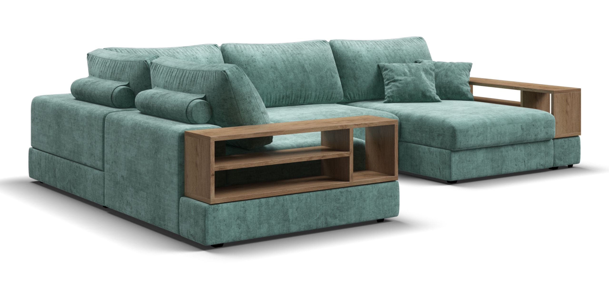 Модель доступна в различных цветах, включая свежий мятный оттенок, что позволяет легко вписать его в любой интерьер. Модульная конструкция дает возможность менять конфигурацию дивана в зависимости от ваших нужд, что делает его универсальным выбором для гостиных, офисов или даже спален.