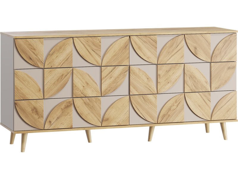 🛠 Комод оснащен шестью просторными ящиками, которые позволят удобно организовать хранение вещей. Ящики выполнены из ЛДСП и МДФ, а их дно имеет белый цвет, что добавляет свежести в общий дизайн. Модель представлена в современном стиле, что делает ее универсальной для различных интерьеров, от минимализма до скандинавского стиля.