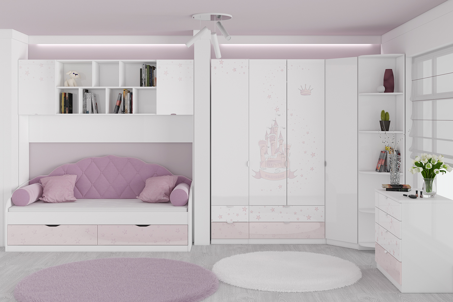 Детский гарнитур Диана - это идеальное решение для создания комфортного и стильного пространства для вашего ребенка. 🌟 Этот гарнитур выполнен из качественных материалов, таких как ЛДСП и МДФ, что обеспечивает долговечность и устойчивость к износу. Мягкие линии и продуманный дизайн делают его безопасным для детей, а также легким в уходе.